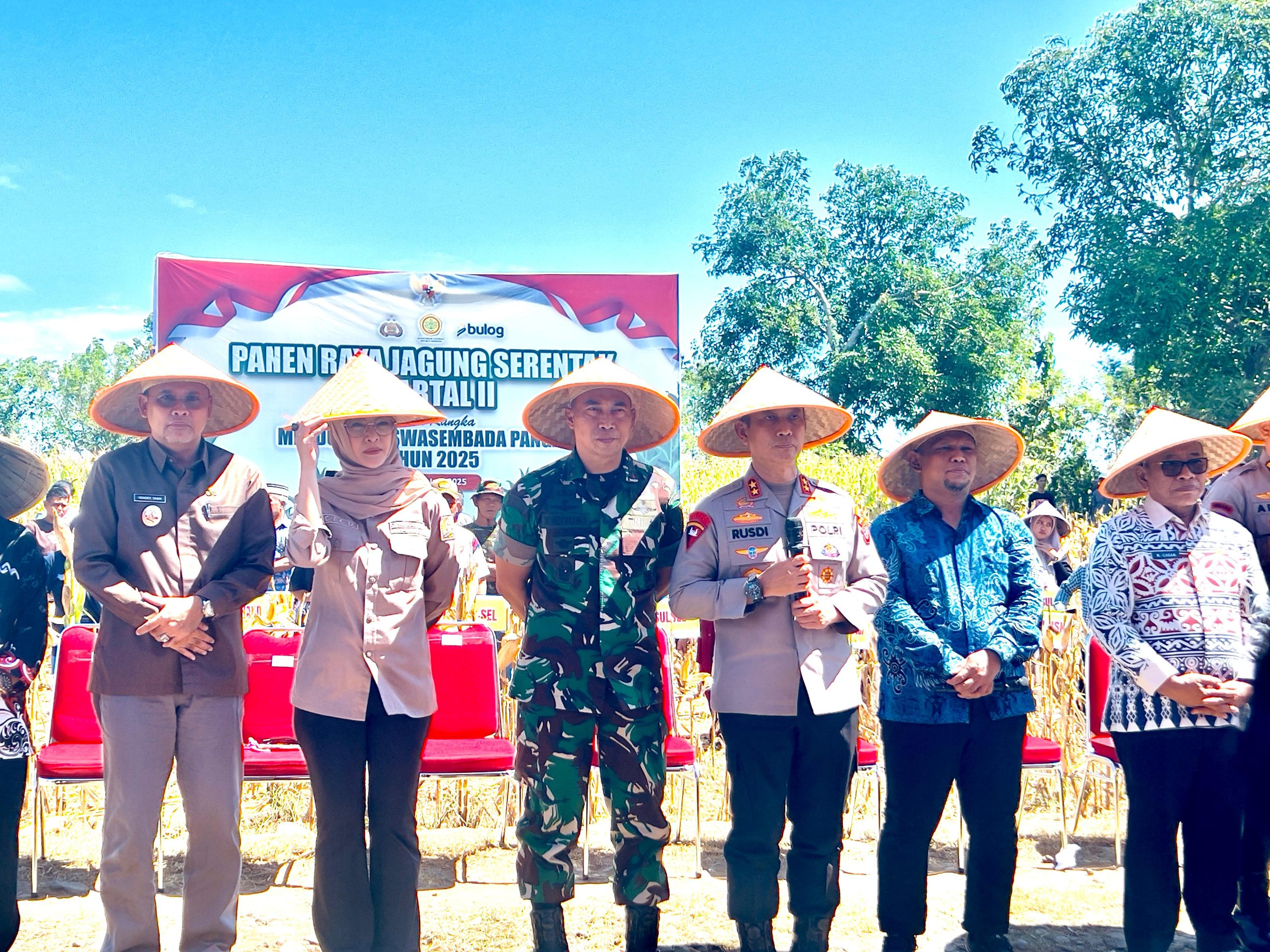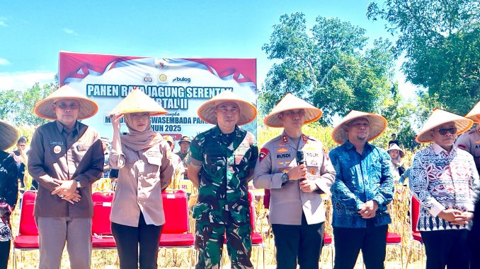 Panen dipimpin Presiden Prabowo Subianto secara virtual didampingi Menteri Pertanian Amran Sulaiman, Kapolri Jenderal Listyo Sigit Prabowo, dan Panglima TNI Agus Subianto.