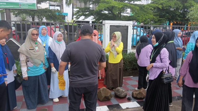 Dengan sarung tangan kuning yang masih dikenakan, Daeng Manye berdiri di tengah pegawai sebagai simbol komitmen bersama menjaga kebersihan.
