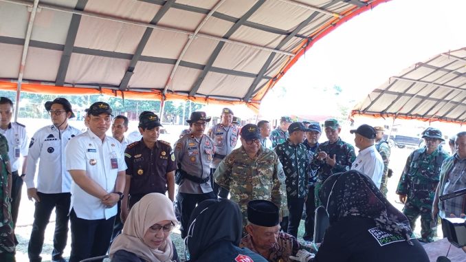 Bupati menyapa warga yang sedang antre untuk mendapatkan layanan pemeriksaan gratis yang disiapkan tim medis Kodim 1426 Takalar bersama Dinas Kesehatan Takalar. Pemeriksaan meliputi tekanan darah, gula darah, dan kolesterol.