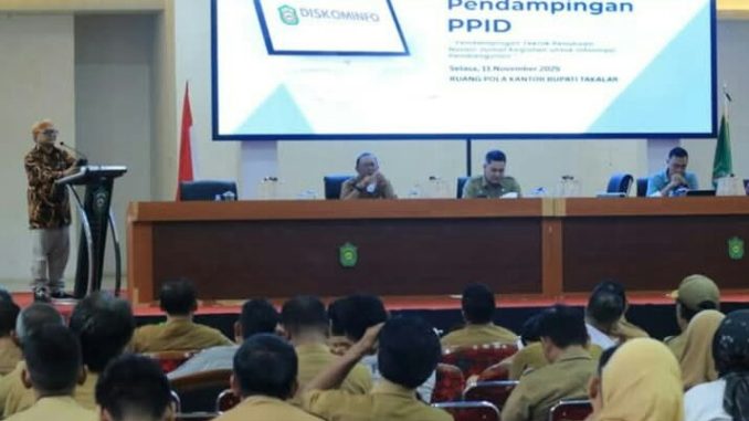 harian-pagi.com.—Pemerintah Kabupaten Takalar dalam hal ini Dinas Komunikasi dan Informatika, Statistik dan Persandian Kab. Takalar kerjasama dengan Tribun Timur telah melaksanakan pelatihan Jurnalistik bagi Pejabat Pengelola Informasi dan Dokumentasi (PPID) di OPD se-Kab. Takalar, di Ruang Pola Kantor Bupati Takalar, Selasa 11 November 2025.